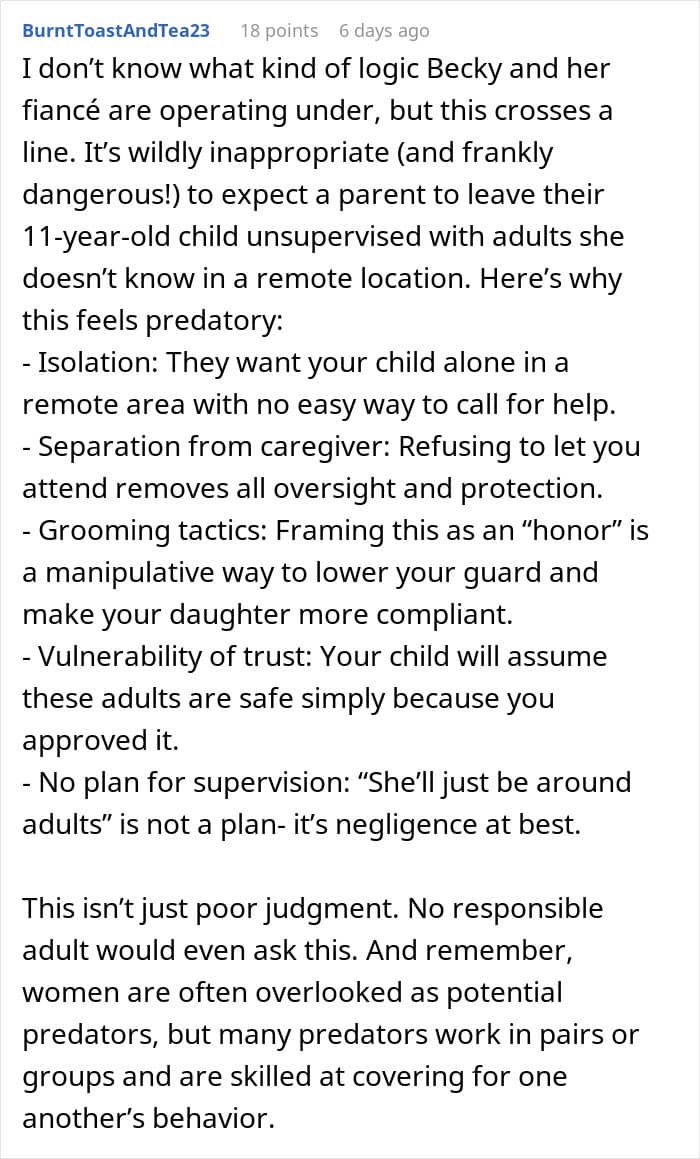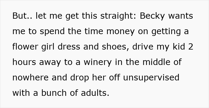 But it’s thought to be a nice way to include children close to the couple in their special day. Judging from the post, “Becky” was more concerned with the aesthetic of her ceremony and not the people attending, or in our case, cast overboard.