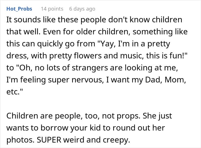 But this mom thinks her friend wanted to “employ” her daughter just for the visual effect