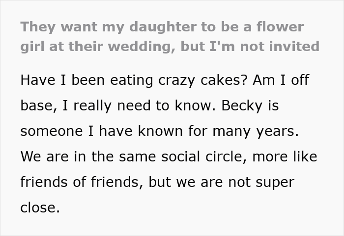 Weddings have a way of testing friendships, family ties, and the limits of good manners. Between guest lists, budgets, and fragile egos, it’s not uncommon for people to feel overlooked. But every so often, a story comes along that manages to surprise even the most seasoned wedding attendees. Posted on the subreddit r/weddingshaming by MaudeDib, this tale of a bride who asked an acquaintance’s child to be a flower girl—while explicitly uninviting the mother—highlights how a sweet tradition can be twisted into a logistical and emotional mess.