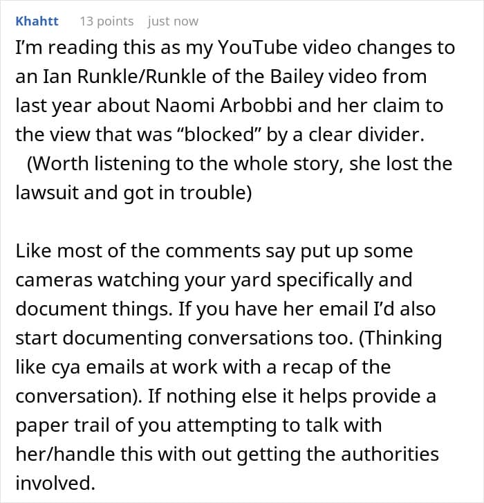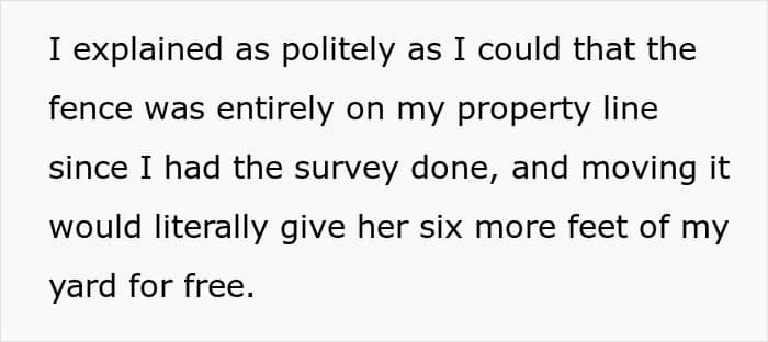 But somewhere in between lives the neighbor who believes your business is their business. No matter how tall the fence, they’re convinced they have a say in what you do on your side. Just like one Redditor’s neighbor thought she could demand they move their fence by 6 feet so she wouldn’t lose her tree view.