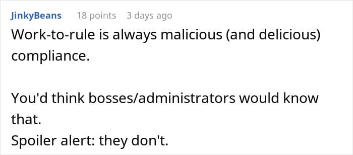 Readers approved of workers’ malicious compliance