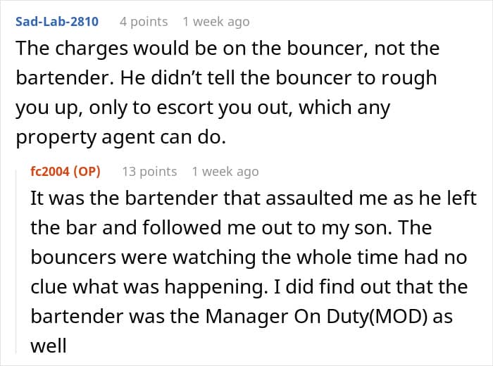 “Other than the physical a*****t, what upset me the most was how the bar was deceitful in hiding and not informing their customers of the auto tip,” the OP told We in a recent interview. “There was absolutely nothing posted in the bar notifying of such. I felt my son was taken advantage of. My guess is that because this was a tourist area, it was a deliberate practice to mislead folks.”