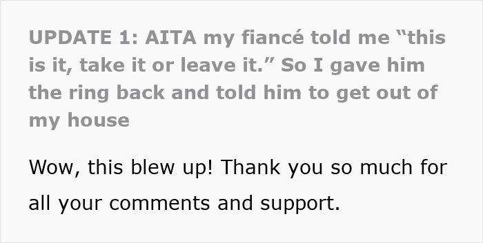 What do you think about this situation? Do you think the OP overreacted by ending the engagement, or was it justified? We would love to know your thoughts!