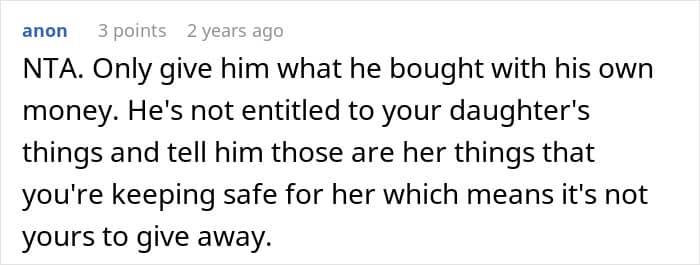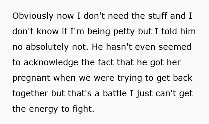 Readers assured the author that she had done nothing wrong and discouraged her from giving her ex anything