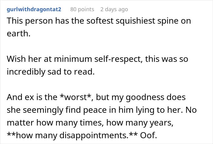 Readers were shocked that the couple got back together, and many encouraged the woman to end the relationship for good