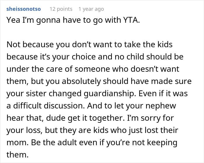 A woman asked the internet if she was wrong to refuse to take in her late sister’s three children, after being named their guardian. We reached out to her via private message and will update the article when she gets back to us.