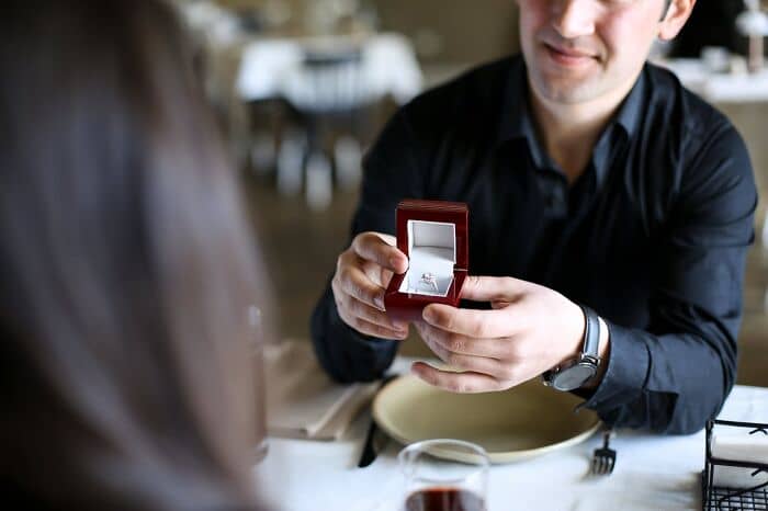I work at a dinner theatre, and we usually do proposals where we set up a ‘random draw’ where the ‘winner’ comes up on the stage to win their prize, and are then surprised by their partner who proposes. It’s usually sweet and makes everybody in the room all fuzzy and warm.