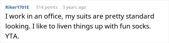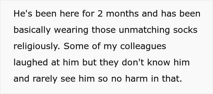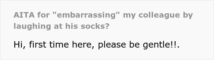 If you were in this situation, would you side more with the colleague who wore the socks or with the person who laughed at them? We would love to know your thoughts!