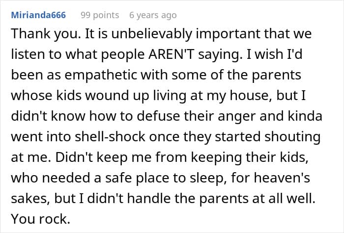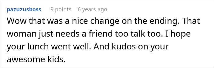 What this mother did might seem like an impossible task sometimes: she met someone angry with empathy and compassion. It might be hard to empathize with a person when they’re yelling at you and making unreasonable demands. Yet, the Redditor was able to see the similarities in herself and the other mother by empathizing with what she is currently going through with her husband.