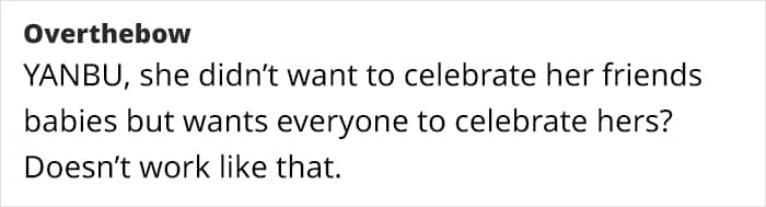 Finally, Sue says, “As for the mum who banned all kid talk until she had her miracle baby, all she can do now is apologize profusely while her friends decide whether they can start fresh or tell her she has burned her bridges. And hell no, they won’t give her a baby shower.”