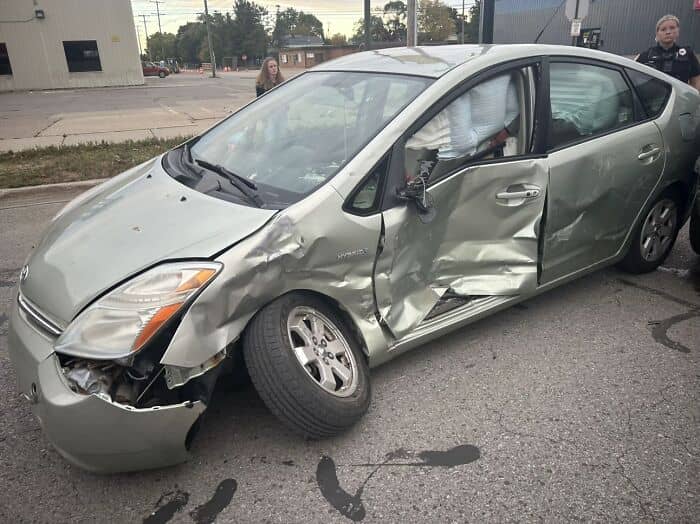 Hit by a semi truck on the freeway. Cop said he’s never seen someone walk away from an accident like mine. I had bruises and scratches but I was ultimately fine. I definitely had my guardian angels with me that day!