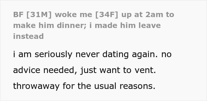 She explained how her 31-year-old boyfriend, stressed from work, woke her up at 2AM demanding she cook him a fresh meal. Never mind the fact that there were perfectly good leftovers in the fridge, he said it was her “duty” as his girlfriend. Keep reading to see how one midnight meltdown turned into a serious reality check.