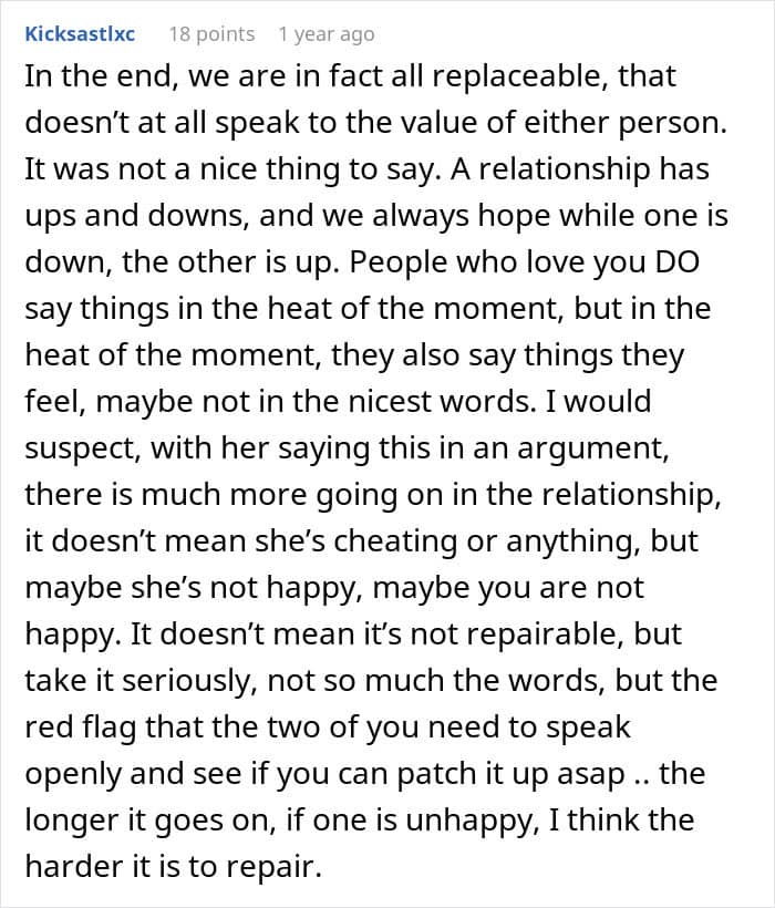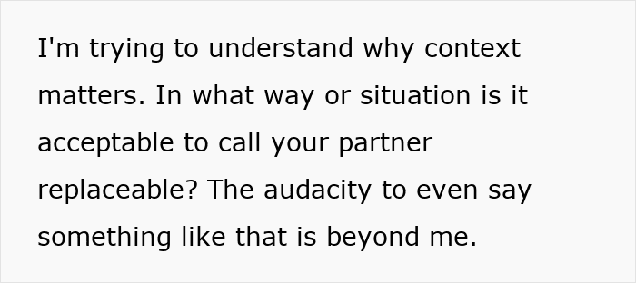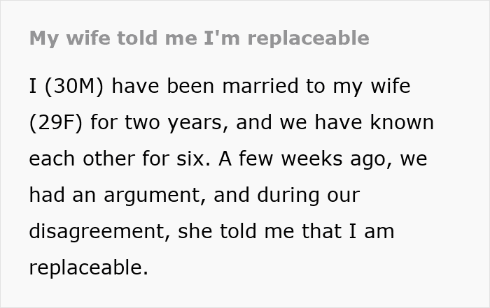 A woman told her husband that he was “replaceable,” which sent him to the hospital