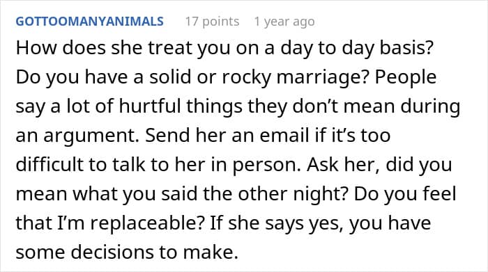 Contempt is another issue that may fuel insults, much like what the husband experienced. According to the Gottman Institute, it is likely driven by long-simmering negative emotions about a partner, which can erupt at any time.