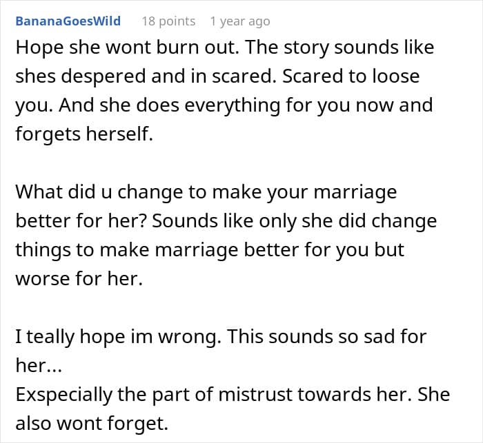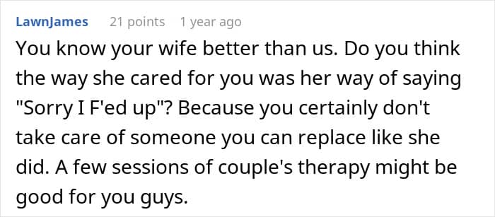 In an article for Couples Therapy Inc., Dr. McMahon encourages couples to aim for greater respect. But if the damage was impactful, she advises seeking professional help. In this case, the story may help the couple gain a better understanding of each other and prevent similar situations from happening again.