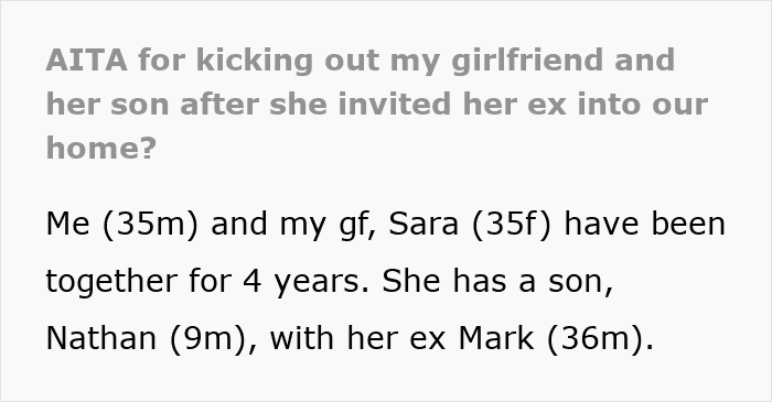 The poster dated his girlfriend (Sara) for 4 years, after which she moved in with him, bringing along her 9-year-old son (Nathan)