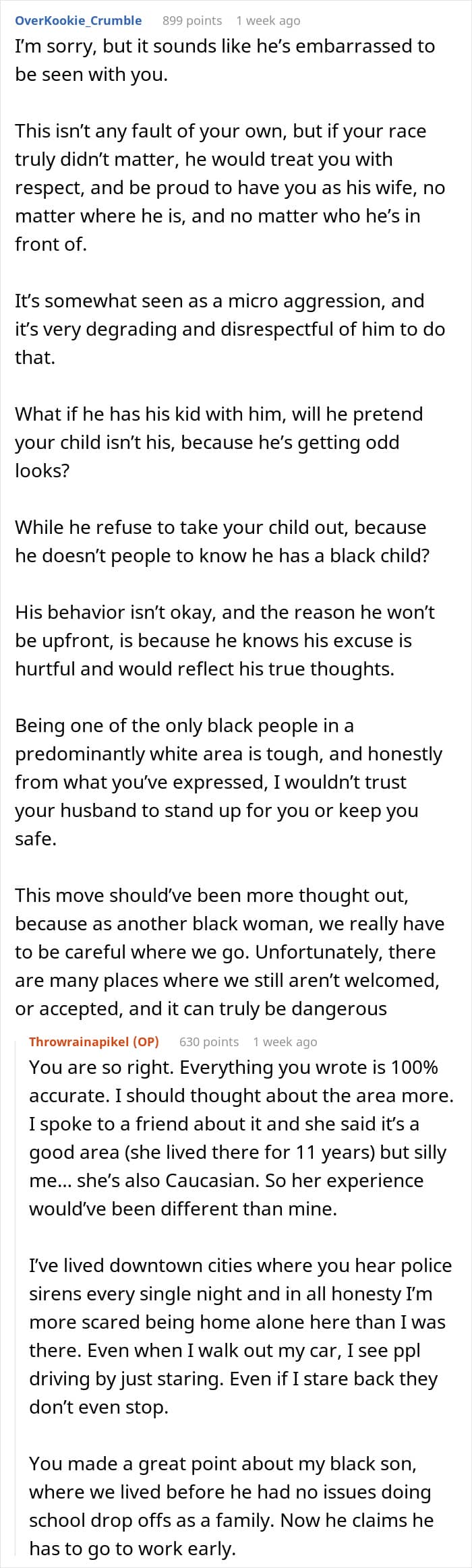 This sudden change has now led her to believe that he is probably cheating on her with someone and doesn’t want his affair partner to find out that she’s Black. Since OP didn’t give an update after this, we can’t really say for sure whether this is true, but what we can conclude is that his behavior is awful.