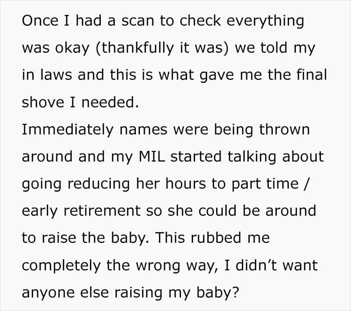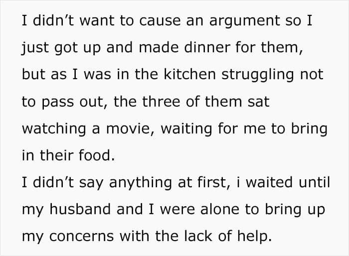 The author did try to talk to her hubby, but that didn’t work. She suggested moving out on several occasions, but everyone was against it. The meatloaf hit the fan when the mother-in-law asked if the woman could give everything an extra scrub so as to k**l off her germs. While she was still sick. It was only natural that she snapped after all the exhaustion and disrespect.