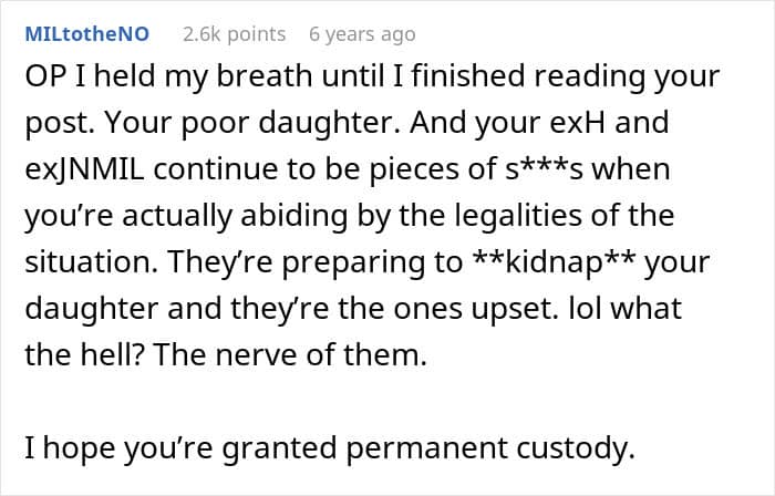 Commenters were dumbstruck to hear about the potential parental kidnapping