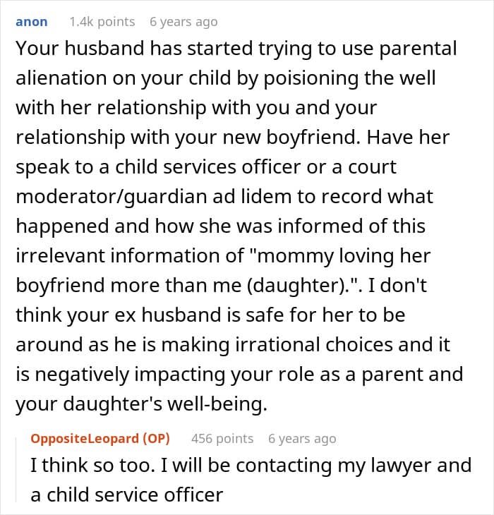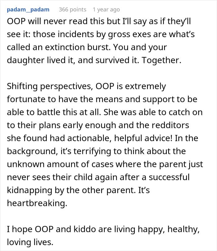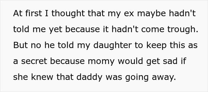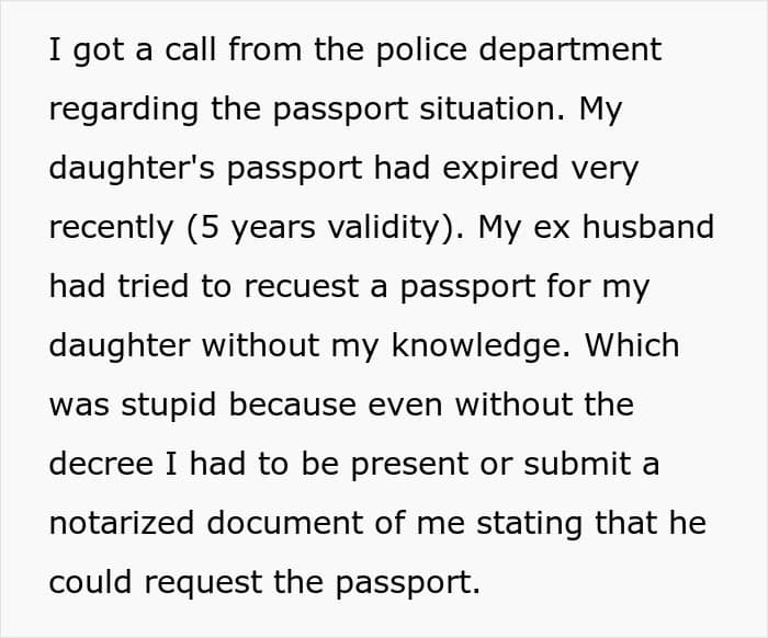 Later, the woman came back with an update, which revealed that her ex wanted to take her daughter out of the country
