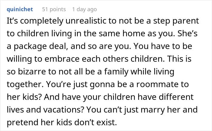 Still, some believe he has every right to refuse to parent his fiancée’s kids