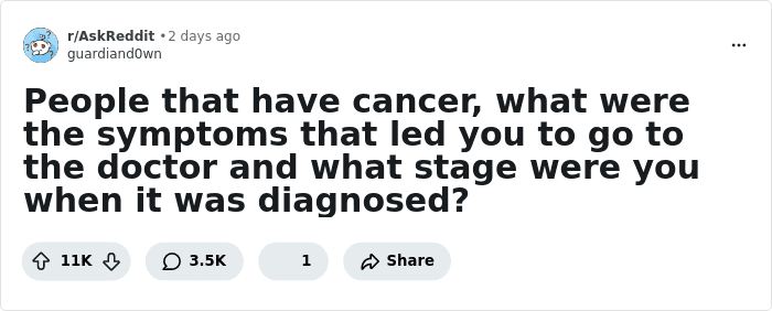 A few Reddit users shared the unusual cancer symptoms they experienced and fortunately caught early on. Hopefully, none of you will ever need to refer back to this list, but it’s worth knowing these valuable pieces of information.