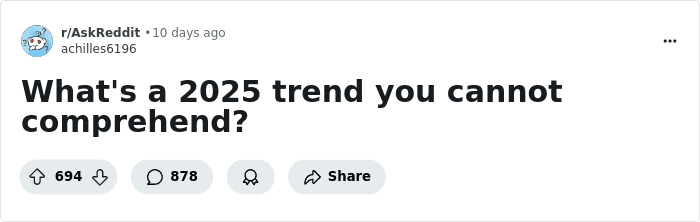 Redditors have recently been discussing the current trends that they can’t comprehend or have absolutely no interest in. From Labubus to Dubai chocolate to the sudden integration of AI into our lives, enjoy scrolling through these things that have been all the rage recently. And be sure to upvote the ones that you don’t understand the hype around either!
