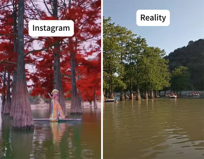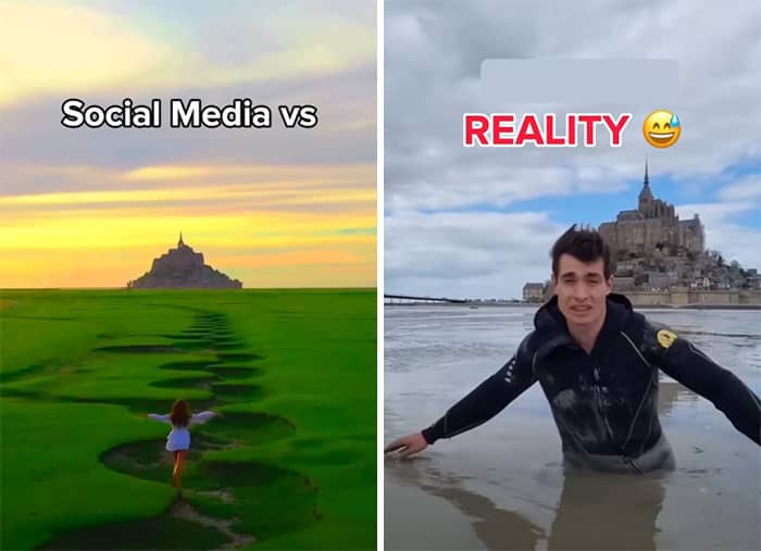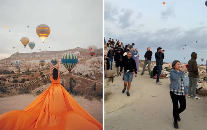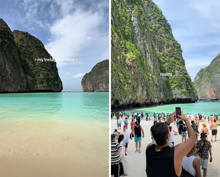 Highlighting exactly this, the We team rounded up some eye-opening “Instagram vs. reality” photos from across the internet, all focused on those dreamy travel shots. You know the kind: someone twirling in front of a crystal-clear lake, hair flowing, not a soul in sight until you realize the real version includes a dozen other tourists, a boat honking in the distance, and a guy casually eating chips just out of frame. Keep scrolling to see the magic and the mayhem behind those perfect posts!