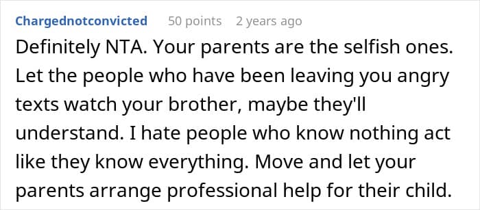 But one person has spent their teen years looking after their disabled brother, and has decided enough is enough