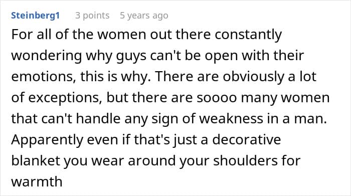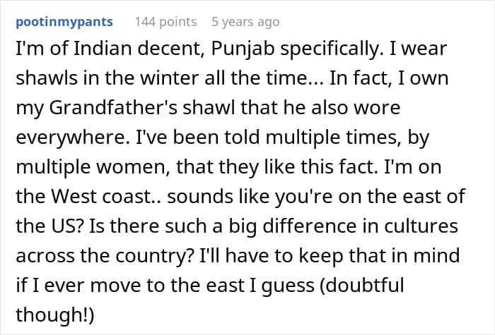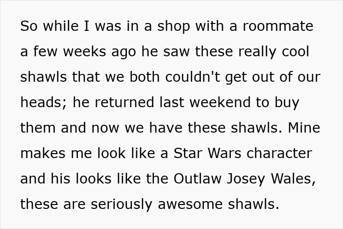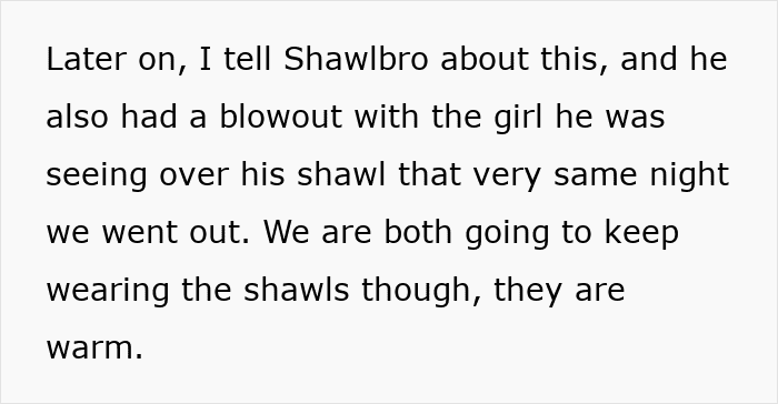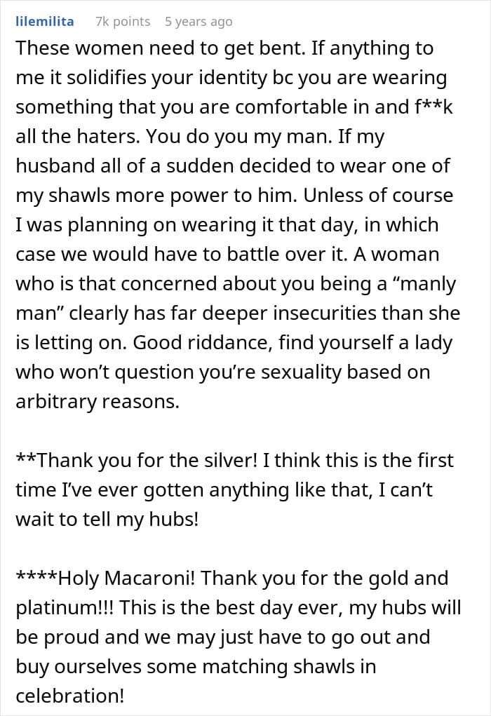 Some may argue that these are outdated standards, but it nonetheless became a problem for this couple. The man decided to meet up with his girlfriend wearing a shawl, prompting her to question his masculinity.