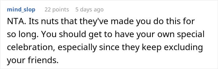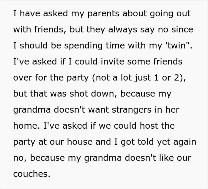 But this 17YO isn’t allowed to… Instead, her grandma gets to plan their combined party every year