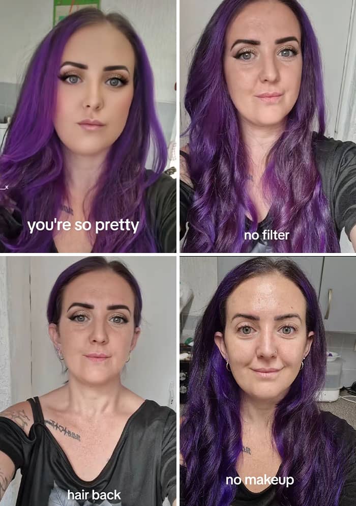 We have to remember that our online personas are curated, and the vast majority of people are trying to make themselves appear as beautiful, successful and happy as possible. So to give netizens a reality check, Sarah New started a trend on TikTok where she encouraged women to show their bare faces without any makeup or editing. And, spoiler alert, they look just as stunning without all of the glitz and glam. Enjoy scrolling through these reminders of what real faces look like, and be sure to upvote the images that you’d like to see more of on social media!
