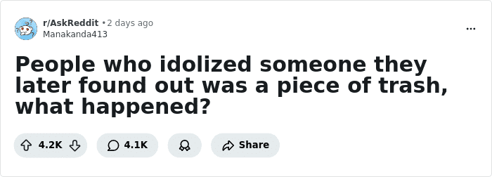 Sometimes, we forget that nobody’s perfect. We hear an album that speaks to our heart, so we decide to learn more about the artist who made it, and three days of binge-watching their interviews later, we set the picture as our phone screen, convinced they can do no wrong. But there’s a reason they say you need to separate the person from the craft. Actually, a bunch of reasons. And they’re listed on this Reddit thread where disappointed fans reveal how they learned about their idols’ dark side.