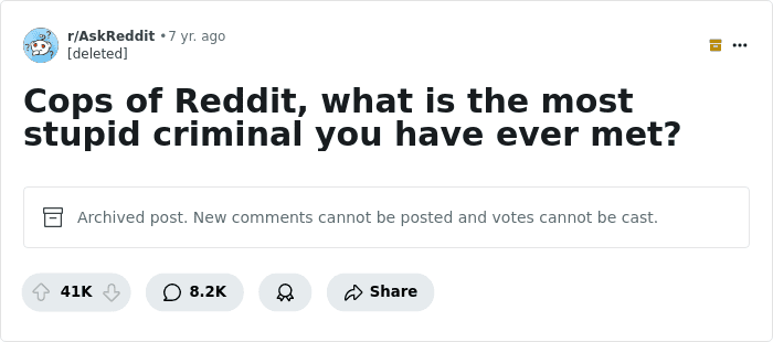 Criminologists have long known that intelligence is a trait rarely found in criminals. This is good news for law enforcement, as lower levels of intellect mean they often leave their trails uncovered, making them easier to catch. Sometimes they even fall straight into police officers’ hands—that’s how idiotic some criminals can be. We know this can be hard to believe, with the media glamorizing offenders and their almost-perfect crimes, so we compiled a list of stories from police officers about the slowest criminals they’ve encountered to prove our point. Scroll down to find them below, and don’t forget to upvote those offenders who would really benefit from a career change.