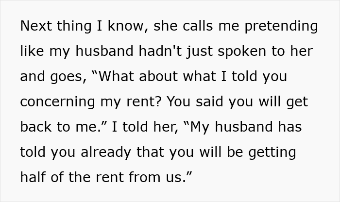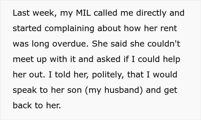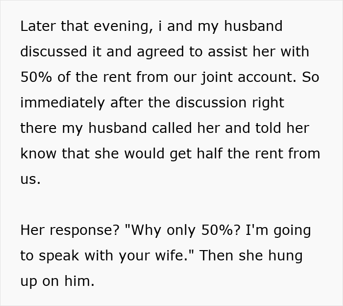 The woman did just that by calmly explaining why they could only give her mother-in-law 50% of the rent money. She simply hung up the phone without responding aggressively, which made her appear more sensible.