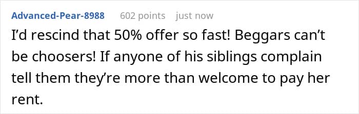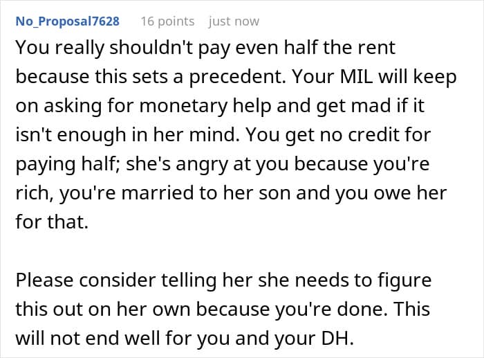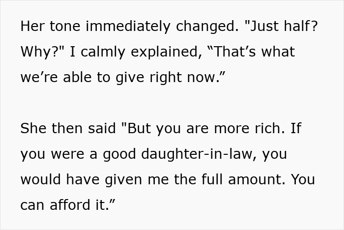 It’s a principle that’s absent in this woman, who needed help with paying her rent. When her son and daughter-in-law offered half of the money, she began questioning their decision. Worse, she also blamed her own children for not being “rich” enough.