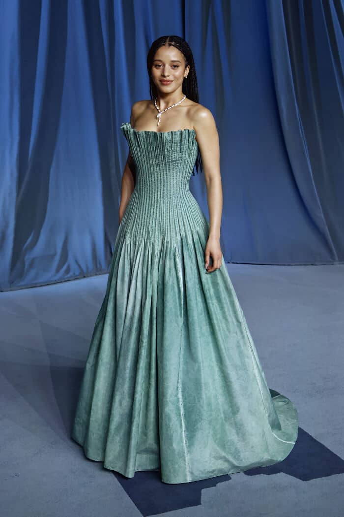 A Complete Unknown actress, Monica Barbaro, showed face (and a lot of linen) at the Academy Museum Gala.