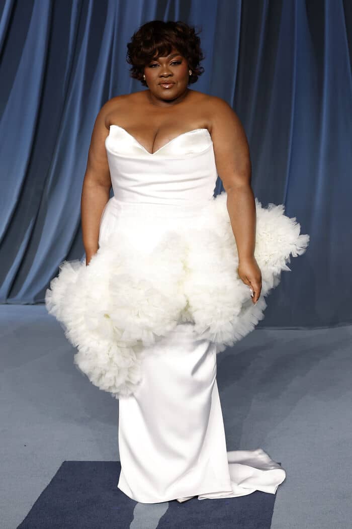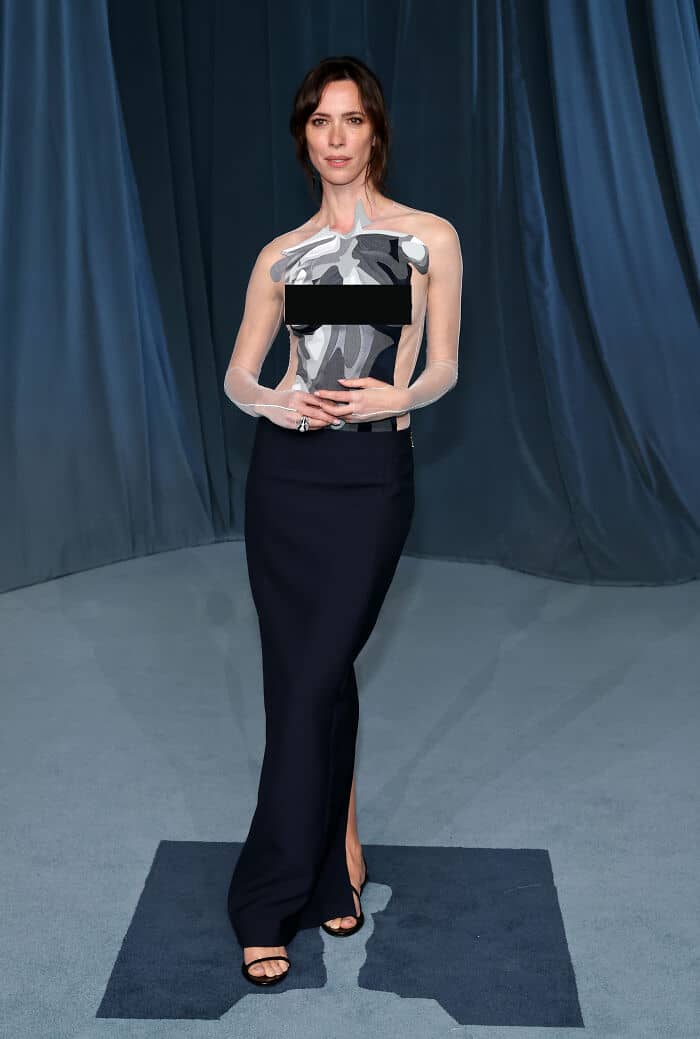 Taylour Paige showed up at the event wearing a lace. The bodice part took on the appearance of a Cold War era bikini, but it may have been a separate garment from the outfit’s bra—its all very confusing.