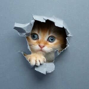The photo shows the little “scarer” still cowering between her legs, likely camera shy.