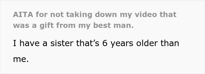 At the same time, a child who is shown special treatment might let that go to their head. “Favored children may feel a sense of entitlement, and that rules do not apply to them,” Dr. Gidenko explained. That sounds very similar to the sister in this situation. According to the groom, his sister frequently has meltdowns and ruins his most important days. Perhaps she cannot handle not being in the spotlight, so she, consciously or subconsciously, sabotages his most important days.