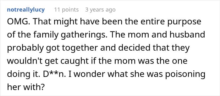 RELATED:This woman noticed that she was getting food poisoning every time she visited her mother-in-law