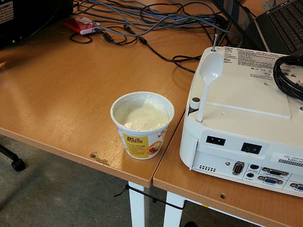 #84 Use A Projector Instead Of Spilling Yoghurt Everywhere When Your Spoon Is Constantly Tipping Over Your Yoghurt Container