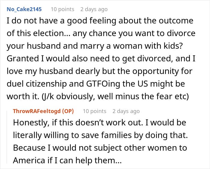 Others accused her of “being overly dramatic” and chided her for “wanting to ruin her marriage over a president”