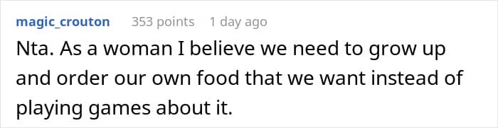 From my personal experience, I can say that we don’t do that on purpose. It’s just that we really aren’t peckish in the moment, but when the food arrives, the smell usually gets you interested in having some. My poor partner already knows that when I announce that I don’t want anything to eat, they go ahead and still order it for me. And when they do it, I feel grateful because I don’t have to pretend not to feel enticed by whatever they’re having.