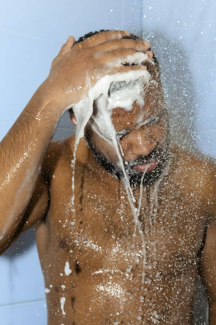 He’s blind as a bat without his glasses so he doesn’t see his hairs in the shower. As far as I know he doesn’t realize he’s beginning to thin in the crown area.