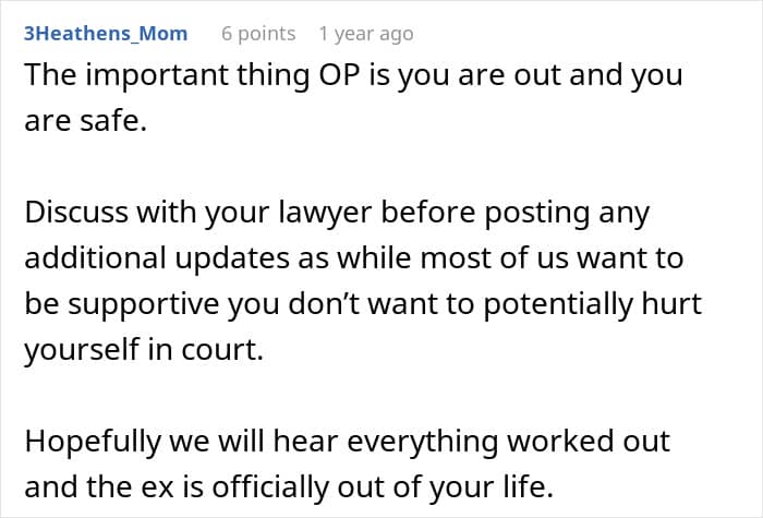 Readers were thrilled that the woman stood up for herself and applauded her family for helping her out