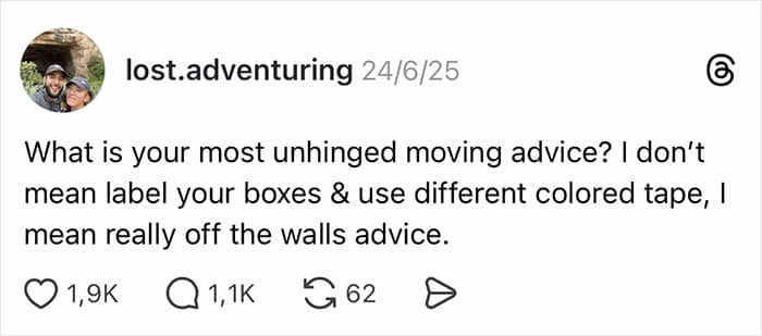 An online community asked a glorious question for the rest of us: What is your mostunhingedmoving advice? The responses were borderline chaotic genius, a symphony of questionable life hacks from people who have been to the brink and back. These are so crazy, they just might work.
