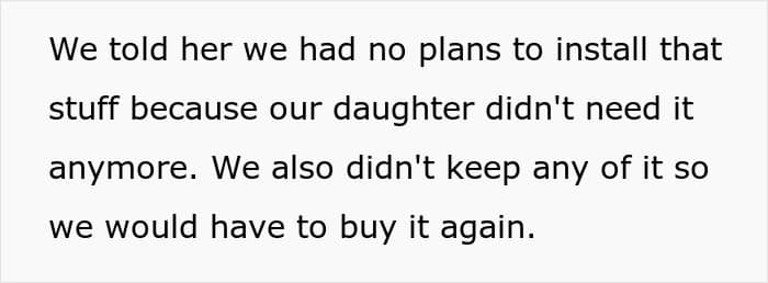 Yet, the OP refused to do so – their daughter didn’t need it, and installing it for the sake of the nephew’s occasional visits was just too much of a hassle. Even the family’s offer to pay for everything didn’t change their opinion.