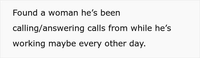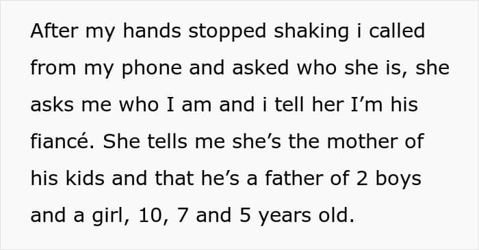 Following the advice of the internet, she suggested they get cameras, which he immediately put down. That was all the confirmation she needed. In a move she’d never made before, she went through his phone while he slept and found a woman he’d been calling regularly. She called the number, and the truth came crashing down: the woman was the mother of histhreechildren.