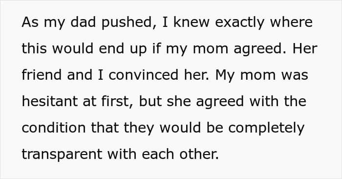 After years together, her barely present father demanded an open marriage from her mom, who was reluctant at first, but gave in after pressure